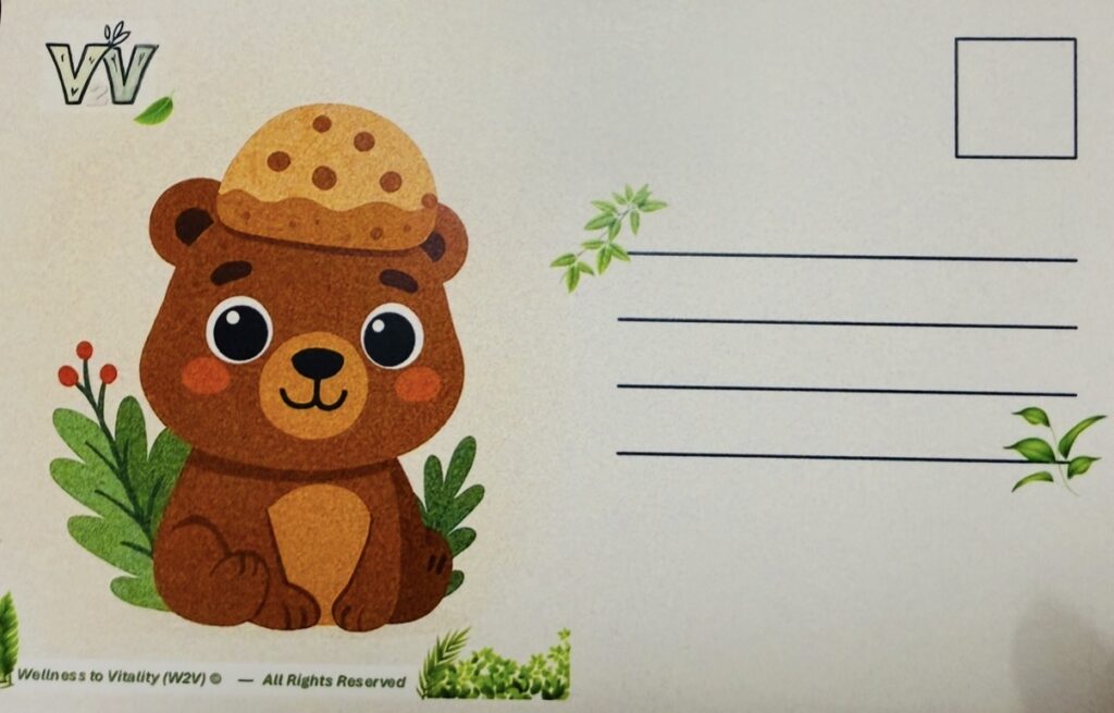 The postcard’s cheerful design, complete with a friendly bear illustration, symbolizes warmth and positivity for the year ahead.